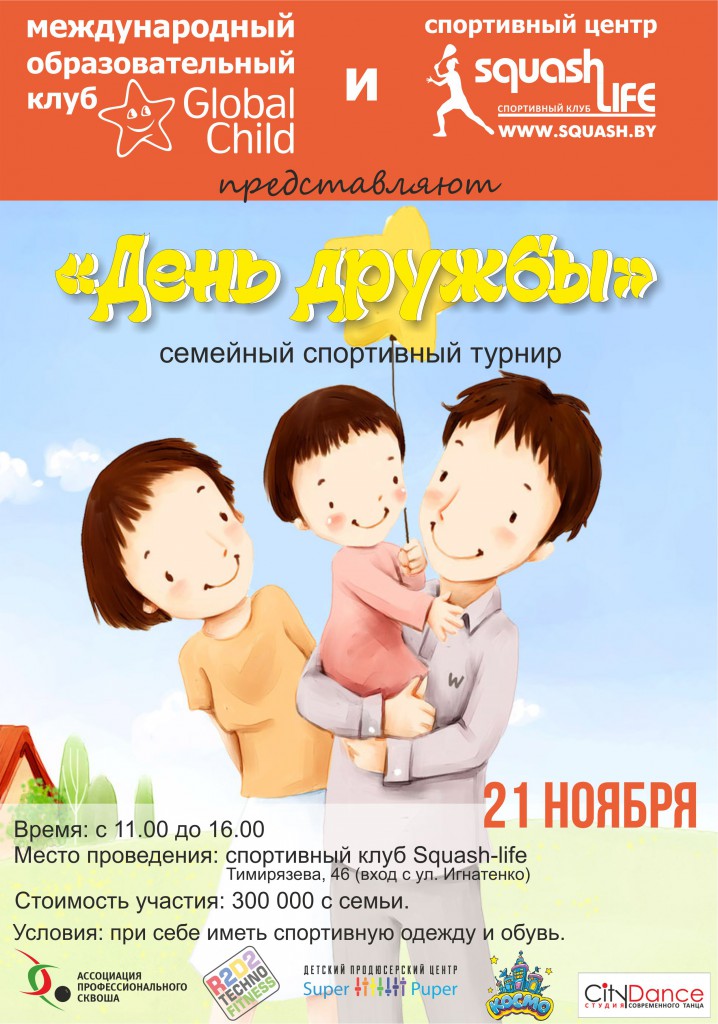Спортивный клуб Squash-life совместно с международным образовательным клубом Global Child приглашает детей и родителей провести выходной день вместе активно и весело.