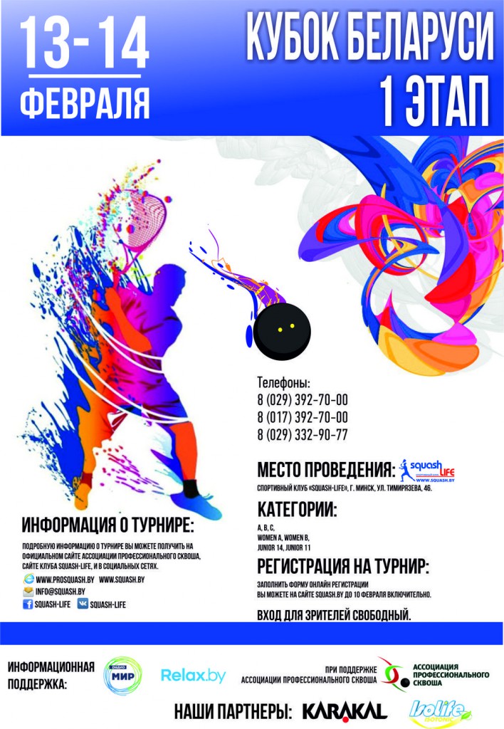 13 — 14 февраля при поддержке Ассоциации профессионального сквоша состоится первое официальное мероприятие в этом году — «КУБОК БЕЛАРУСИ 2016, 1 ЭТАП».